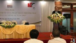 Luật sư Nguyễn Hưng Quang phát biểu khai mạc tại buổi hội thảo về “Trách nhiệm hình sự của pháp nhân thương mại theo Bộ luật Hình sự 2015” ngày 04/05/2018 do CLB Luật sư Thương mại Quốc tế Việt Nam (VBLC) tổ chức tại thành phố Hà Nội với sự phối hợp của Học viện tư pháp.